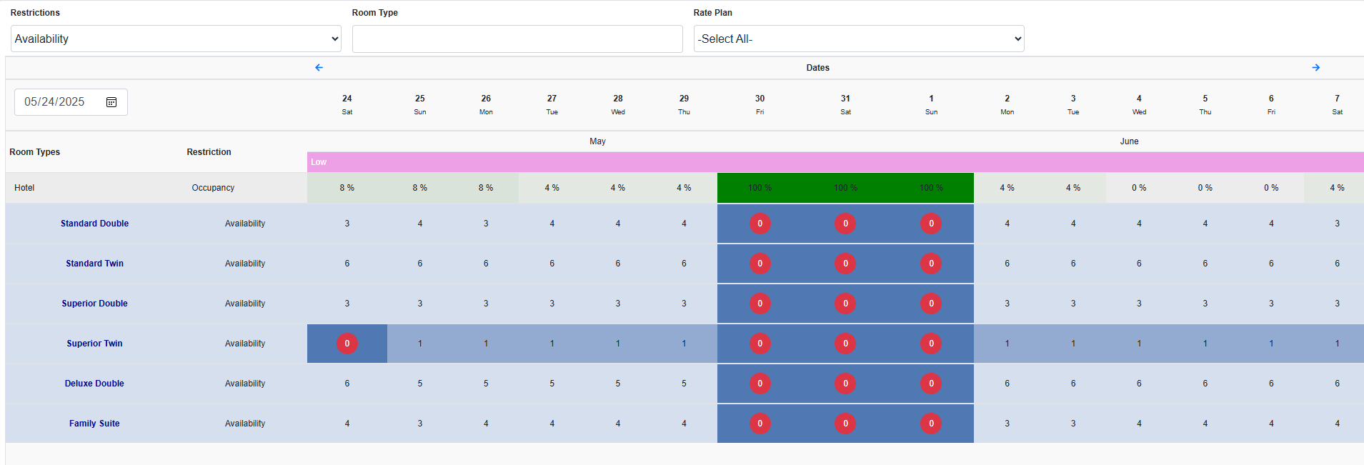 - Availability แสดงจำนวนห้องว่างแบบรายวัน