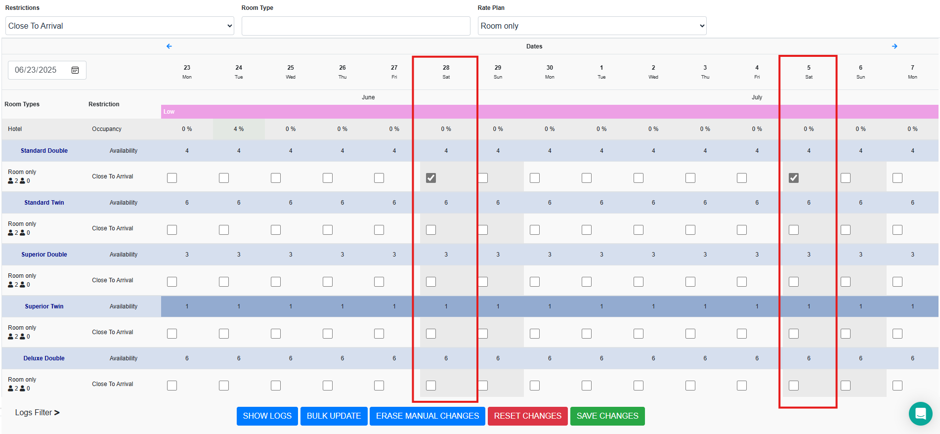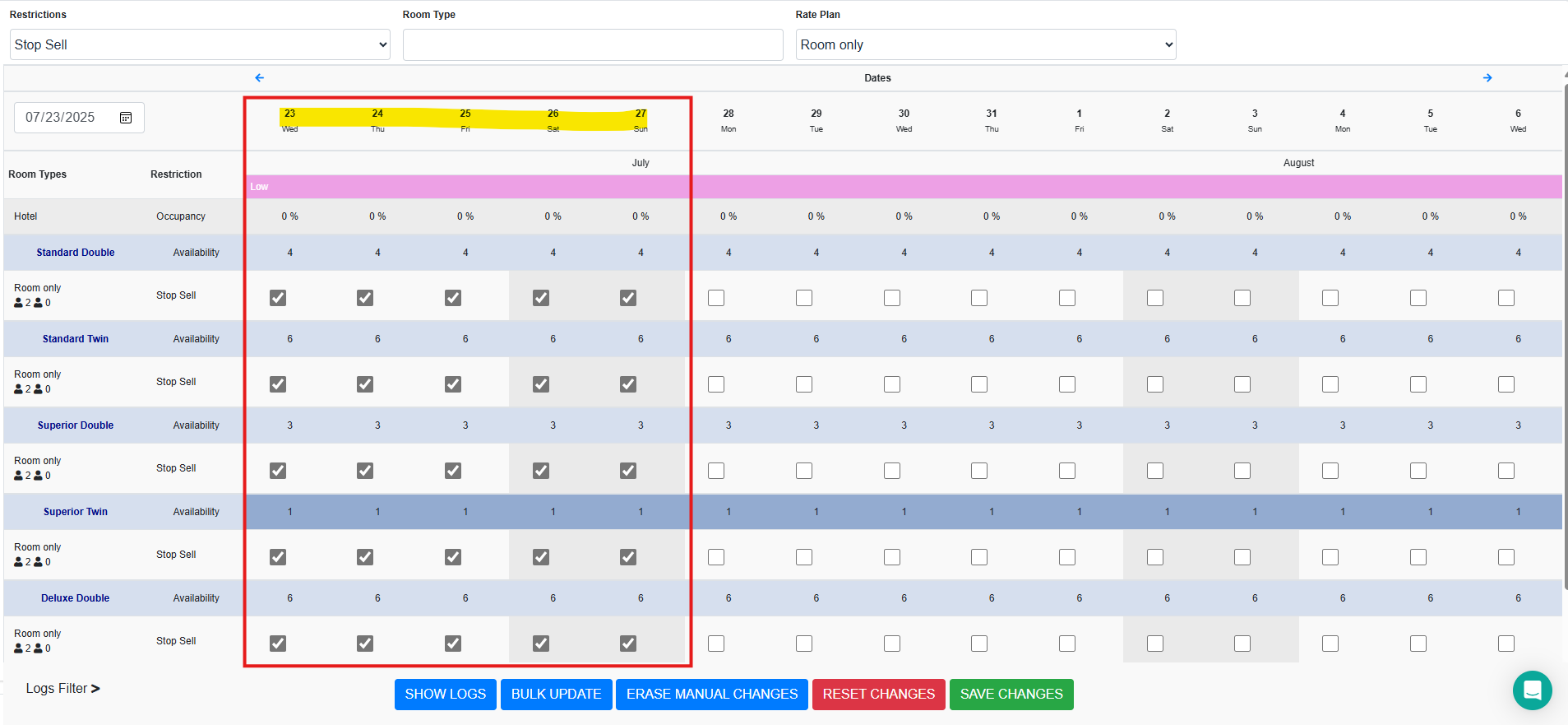 โรงแรมไม่ต้องการเปิดขายเรทแพลน Non Refundable ตั้งแต่วันที่ 23-27 กรกฎาคม แต่ยังเปิดขายเรทแพลน Standard และ Bed & Breakfast
