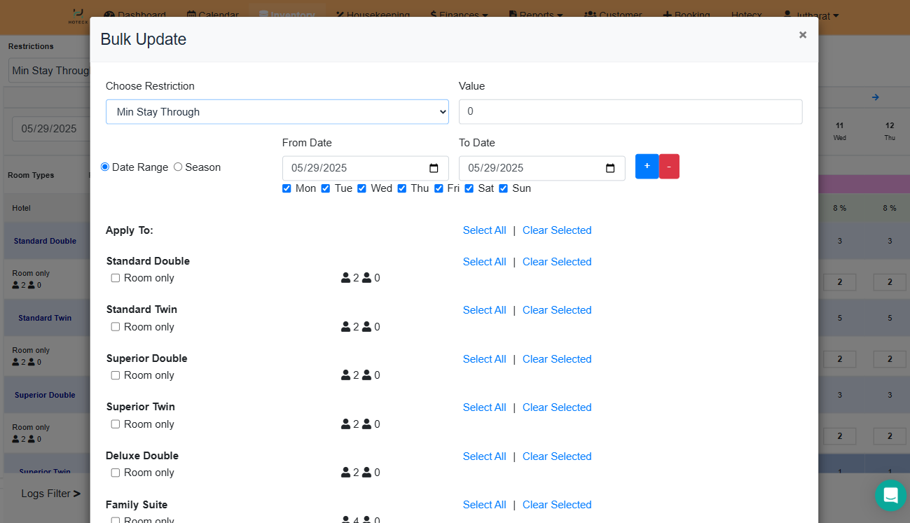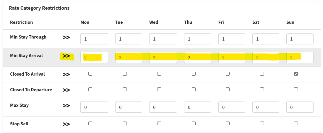 - Min Stay Arrival – จำกัดจำนวนคืนการเข้าพักขั้นต่ำ