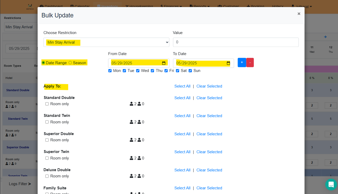 เลือกข้อจำกัด (Restriction) ที่ชื่อว่า Min Stay Arrival