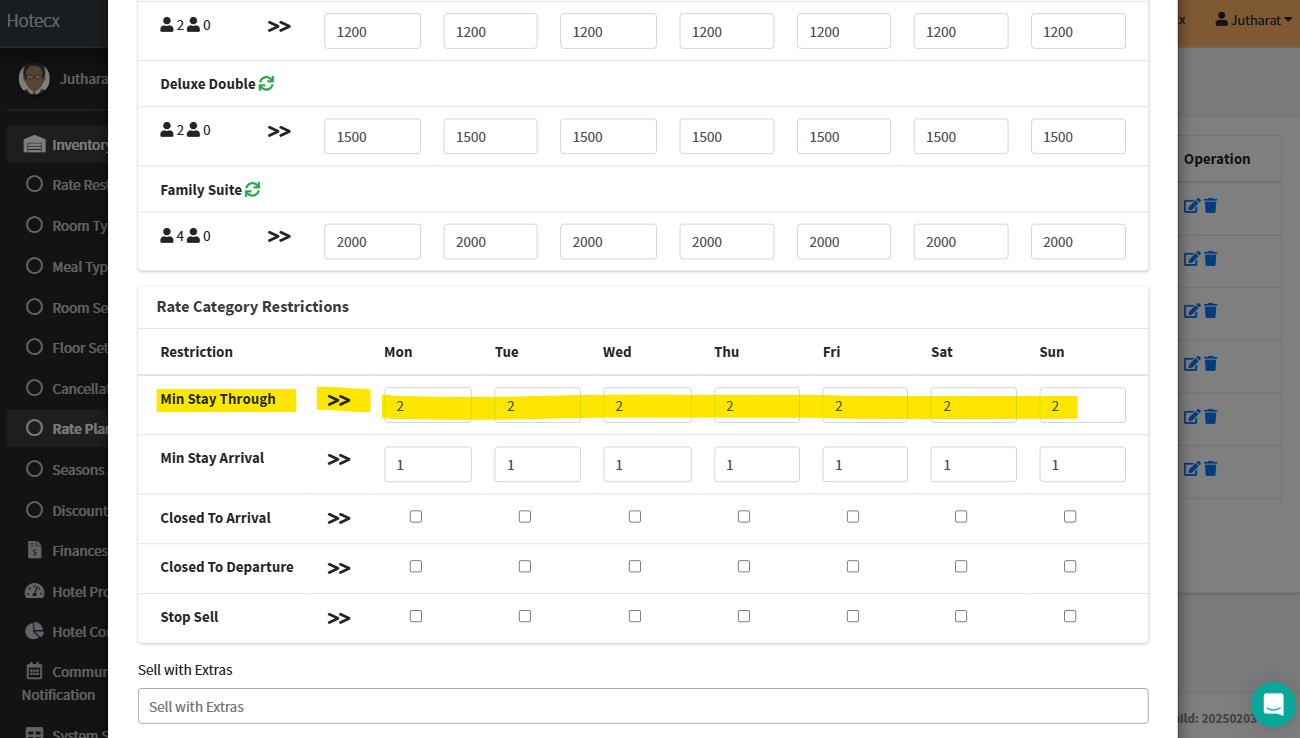 เลือกข้อจำกัด (Restriction) ที่ชื่อว่า Min Stay Through